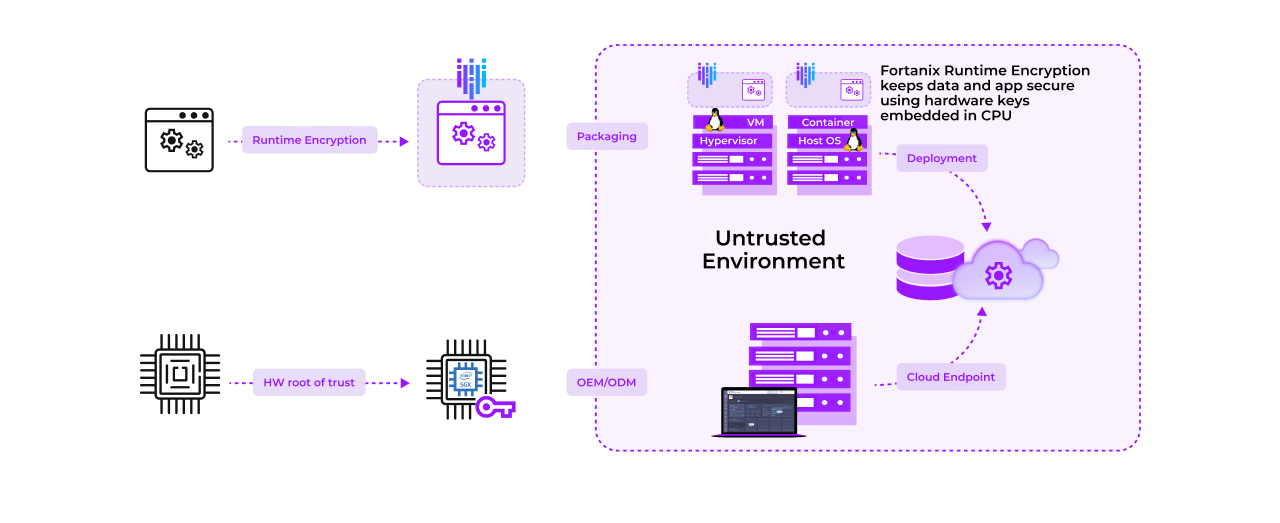 Fortanix Runtime Encryption (FRE) technology enables applications to process and work with encrypted data, without the possibility of exposing plain-text code or data to the operating system or any other running process – including any form of malicious attack. FRE is built using the Intel® SGX technology, available in Intel® CPUs, and makes data and applications used inside Intel® SGX enclaves inaccessible to the cloud service provider, as well as Fortanix itself.